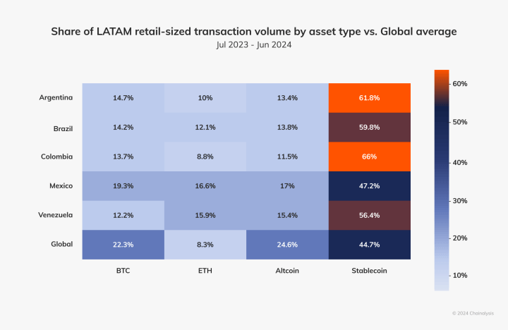 Au fur et à mesure des années, l’utilisation de l’USDT et des stablecoins dans ces pays s’est popularisée, notamment par le biais de solutions de transfert à frais faibles, comme la blockchain Tron, la surcouche Polygon ou le système de transfert interne de Binance. On a ainsi pu voir Tether et les stablecoins être adoptés localement dans des pays variés comme l’Argentine, le Brésil, la Colombie, le Venezuela, la Bolivie, le Liban, la Turquie, le Nigéria, les Philippines ou le Vietnam. Cette adoption se traduit en particulier par une demande forte sur les plateformes de change, où le change entre les monnaies nationales et les stablecoins est beaucoup plus élevé.