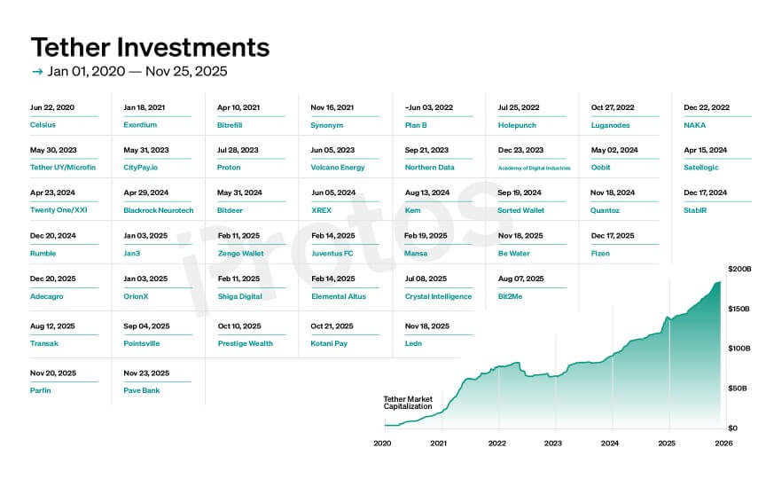 Ce changement de communication coïncide avec l’émergence de Paolo Ardoino à la tête de la société. Paolo Ardoino est un programmeur et entrepreneur italien, qui se spécialisait à l’origine dans la cybersécurité et dans la fintech. Il a rejoint Bitfinex en tant que développeur en 2014 et il en est devenu le directeur technique en 2016 (position qu’il occupait toujours en 2025). En parallèle, il a été nommé directeur technique de Tether Ltd. en 2017. En 2023, Paolo Ardoino a commencé à s’exprimer au nom de l’entreprise, et il a finalement accédé au poste de PDG en décembre de la même année, succédant à Jean-Louis Van Der Velde. Il a ainsi accompagné la troisième phase de la croissance de Tether qui s’est produite entre 2023 et aujourd’hui.